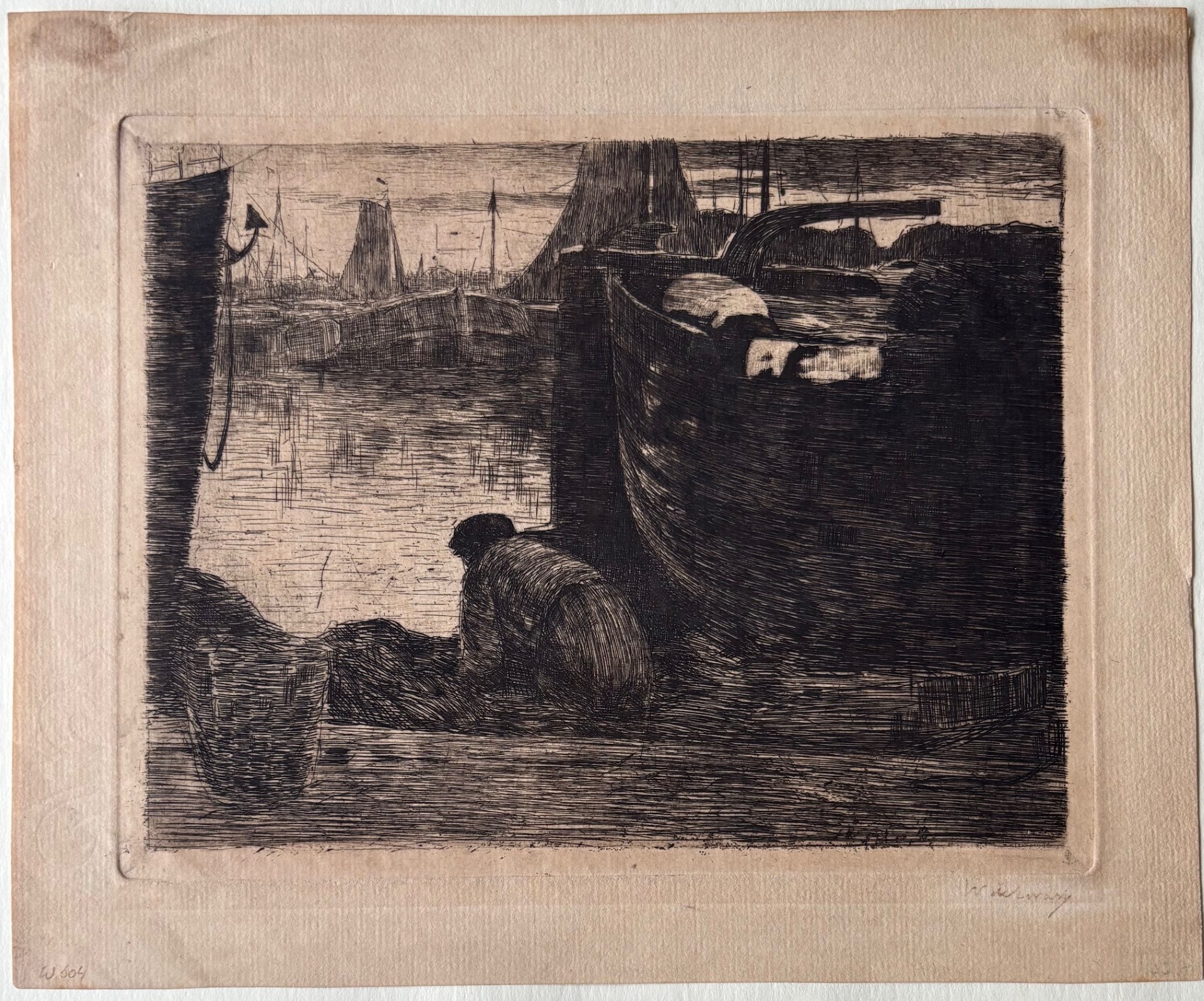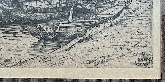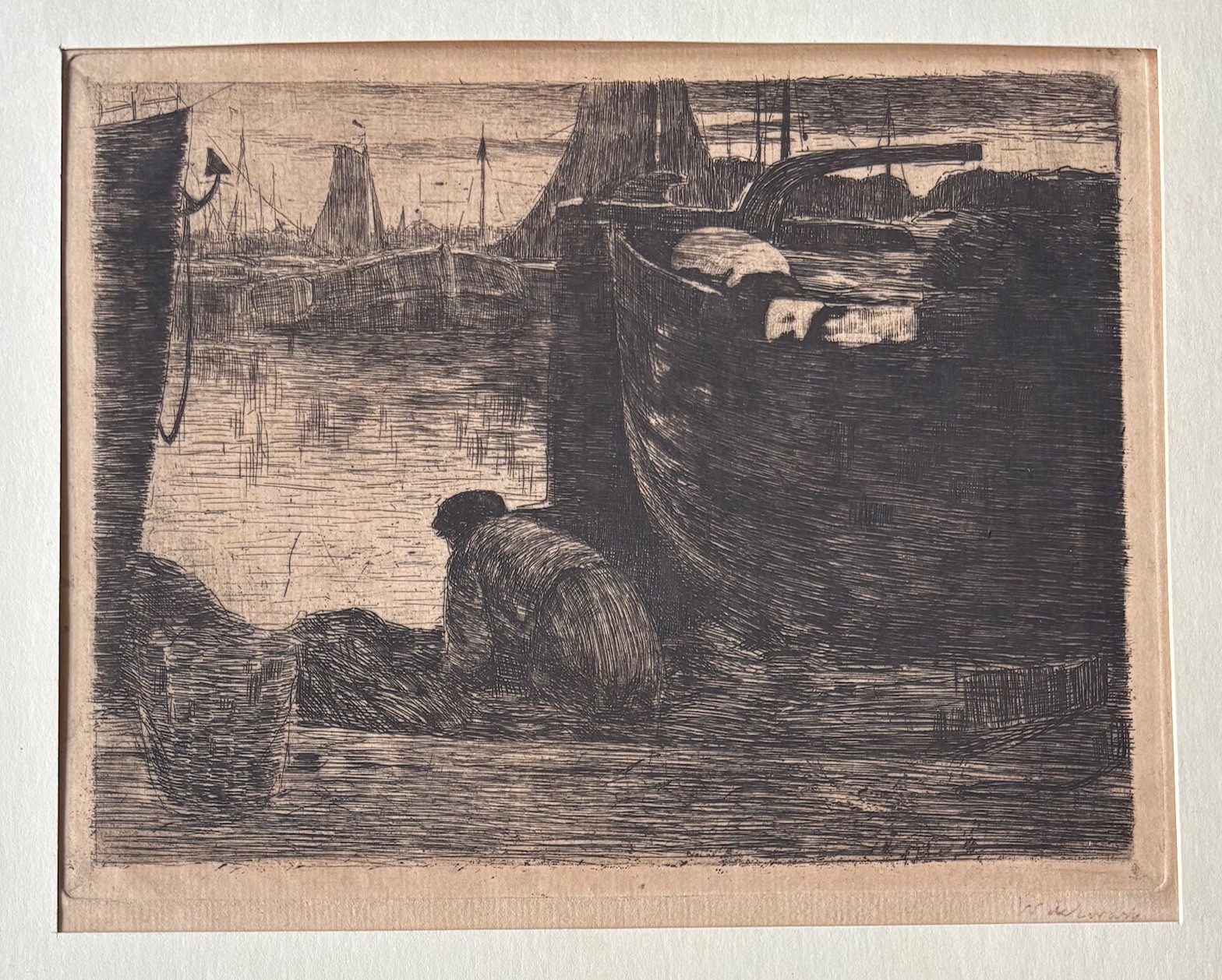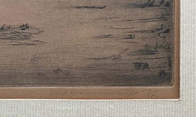 Ets met de titel Tjalk aan de Baarsjes. Ets gemaakt omstreeks het einde van 1895 aan de Baarsjes in Amsterdam. De Baarsjes was een buurtschap in de voormalige gemeente Sloten en maakt nu deel uit van de Amsterdamse wijk De Baarsjes. De buurtschap lag aan de Kostverlorenvaart. Een tjalk ligt gemeerd met op de achtergrond drie molens. Beeldmaat 20 cm x 15 cm. Catalogus van Wisselingh No. 344 in een oplage van 50 exemplaren. Gedrukt onder toezicht van Willem Witsen. Nog authentiek ingelijst. Atelierstempel in de plaat en linksonder met potlood genummerd.