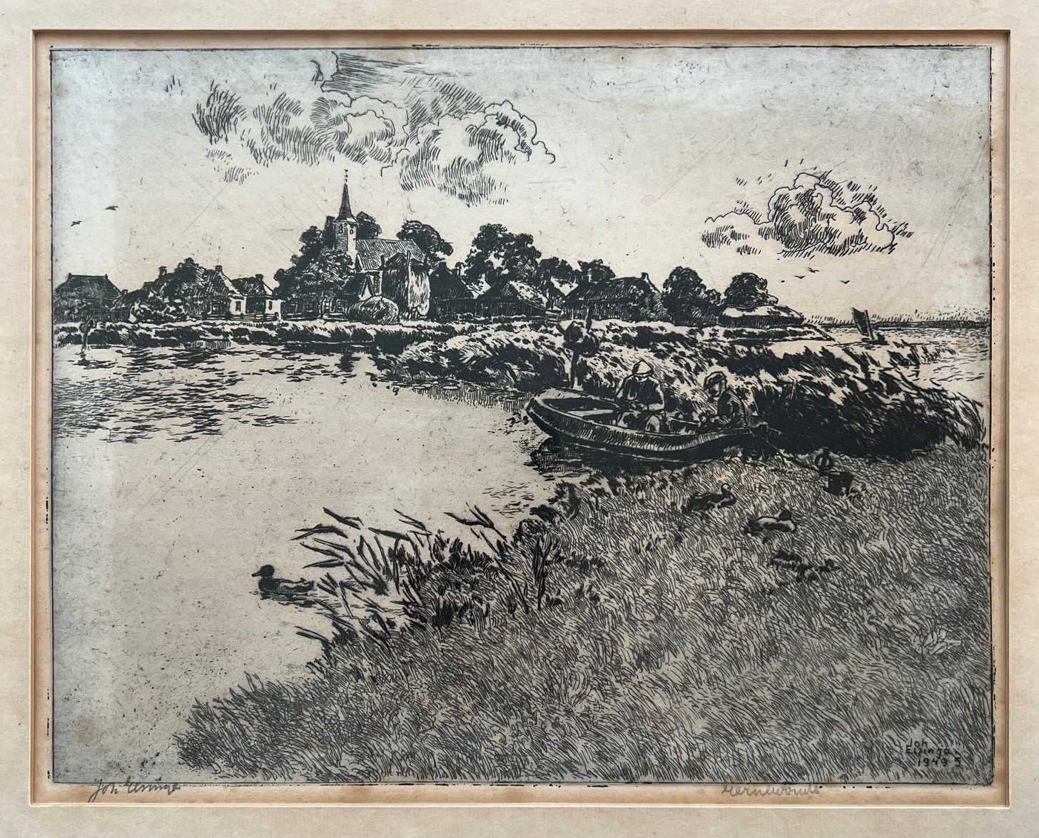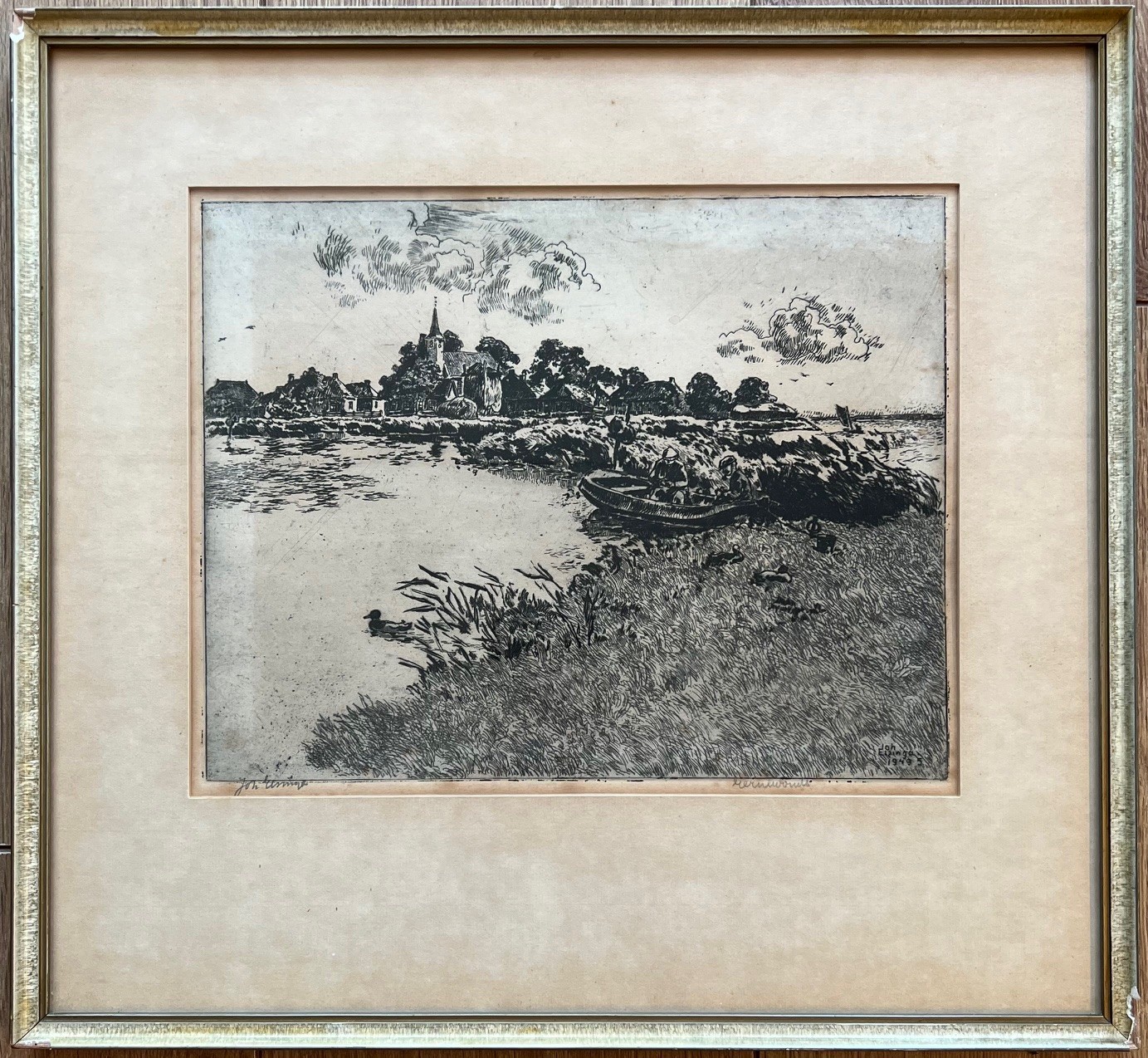 Houtsnede uit 1919. Zuurvrij gelijst in een nieuwe lijst. Met potlood gesigneerd en gedateerd.